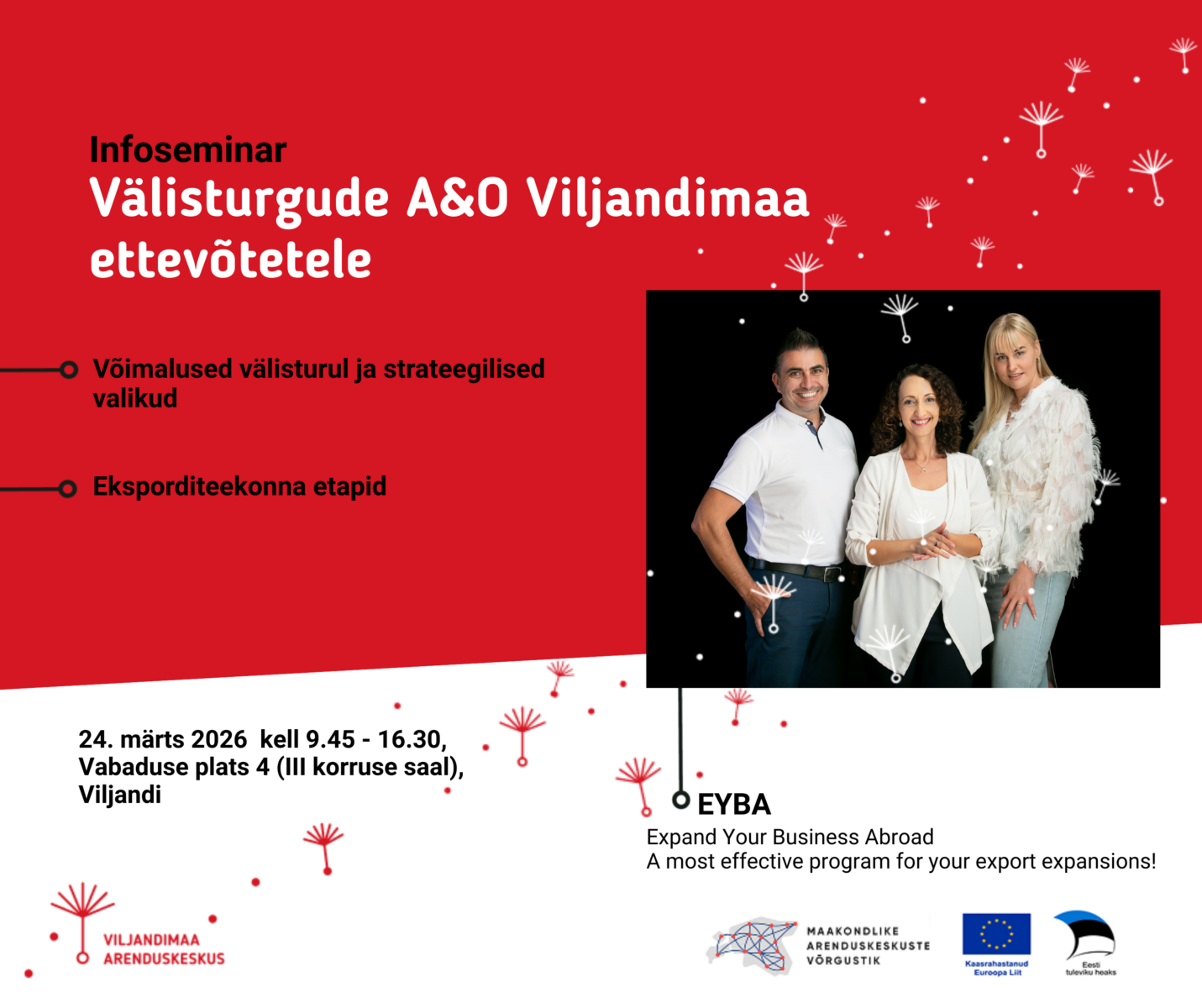 Meie koduturul on omad piirid, vahel väiksemad, kui meie ettevõtete tootmisvõimekus. Selleks, et kogu potentsiaal tööle panna ja käivet kasvatada, tasub vahel pilk üle piiri suunata. Kas ekspordi käivitamine on keeruline? Oled ehk juba alustanud, aga tulemused ei ole ootuspärased? Või oled alles stardijoonel ja otsid kindlustunnet, et alustada? Viljandimaa Arenduskeskus kutsub sind osalema Viljandimaa […] |